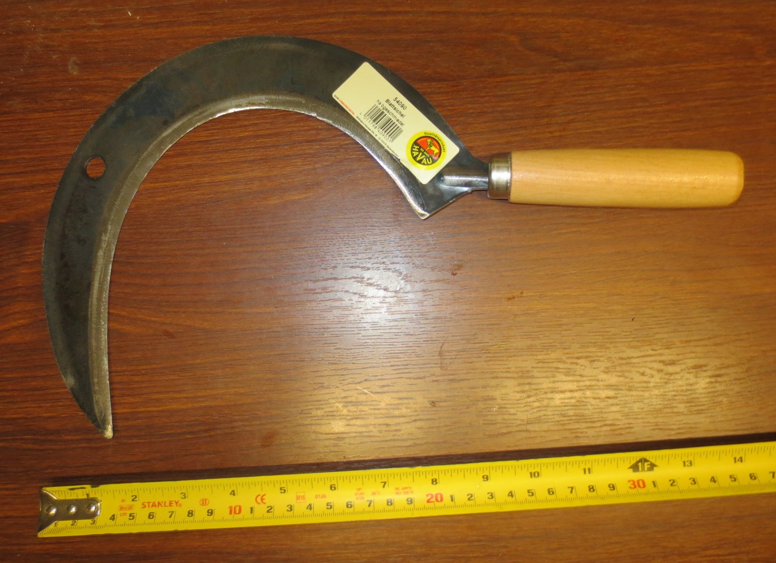 These quality steel sickles are made by SHW in Germany. They feature a steel shank that comes all the way through the wooden handle and is bent over, for maximum resistance to the handle coming loose. Smooth sickles are best for cutting grass, weeds, etc. that you are simply letting fall to the ground…if you are HOLDING (harvesting) the material you are cutting off, then see our Serrated sickles. A great alternative to a weed-eater for cutting around garden beds, etc…quiet, no fumes, provides exercise, and they start every time! Very few companies make sickles with this quality any more.
